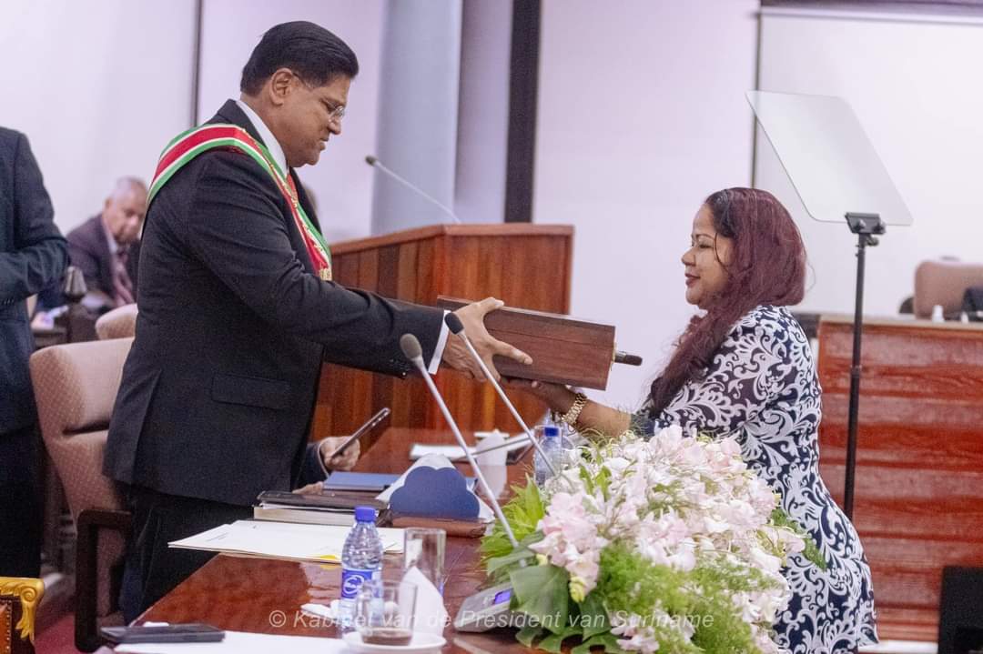 President Chandrikapersad Santokhi heeft tijdens de Buitengewone Openbare Vergadering van De Nationale Assemblée (DNA) op 1 oktober de jaarrede uitgesproken. Hij presenteerde de plannen van de regering voor 2025, inclusief de ontwerpbegroting. Deze voorziet in uitgaven van SRD 50,3 miljard tegenover verwachte inkomsten van SRD 47,1 miljard, wat leidt tot een begrotingstekort van 3,1 miljard SRD (1,7% van het BBP).
