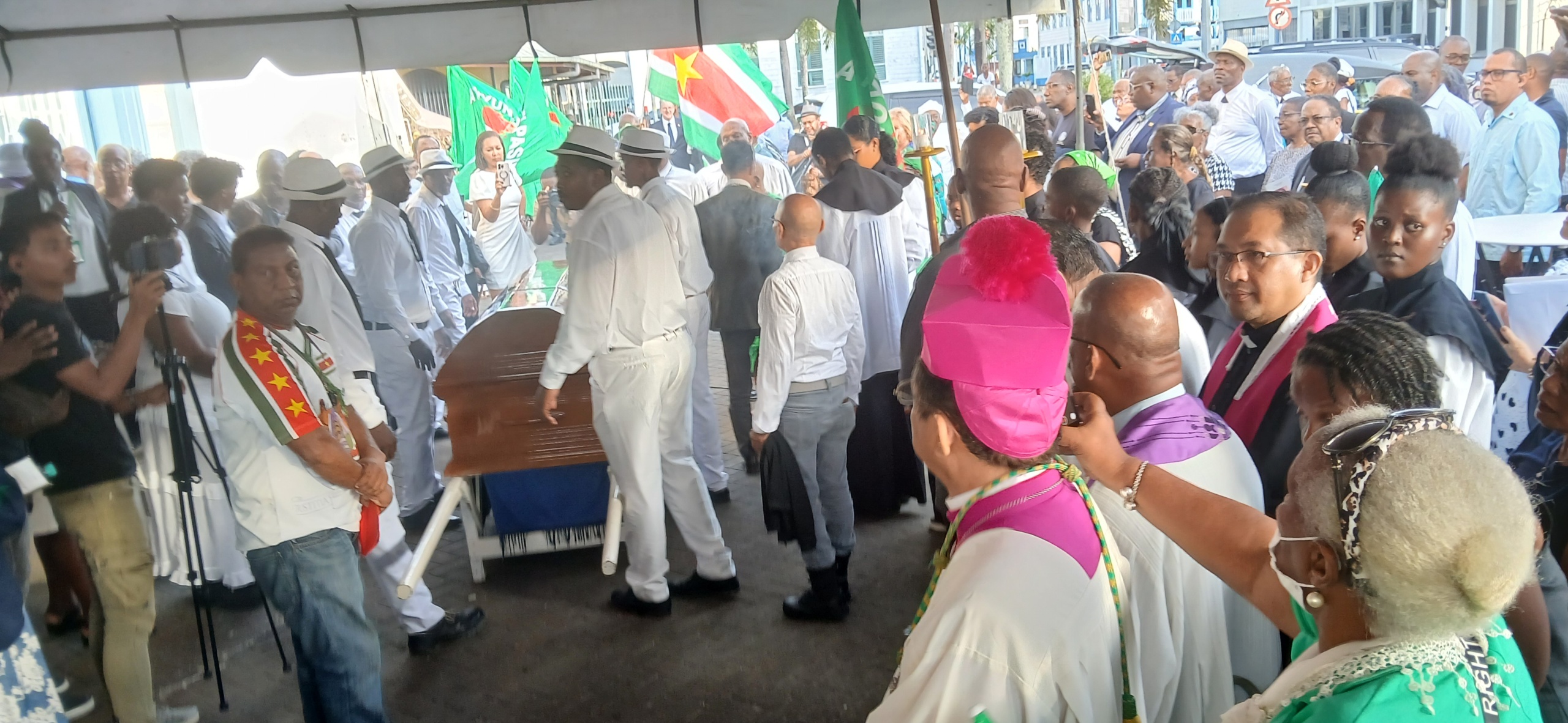 Het is dinsdagmiddag, rond half twee, het tijdstip waarop belangstellenden afscheid kunnen nemen van het lichaam van oud-president Runaldo Ronald Venetiaan. Zijn lichaam ligt opgebaard in de Basiliek, beter bekend als de Kathedraal. Venetiaan, door velen liefkozend “Vene” of “El Vene” genoemd, krijgt zijn laatste eerbetoon van hoogwaardigheidsbekleders, familie en vrienden. Van de top van het land tot de kleine man.
