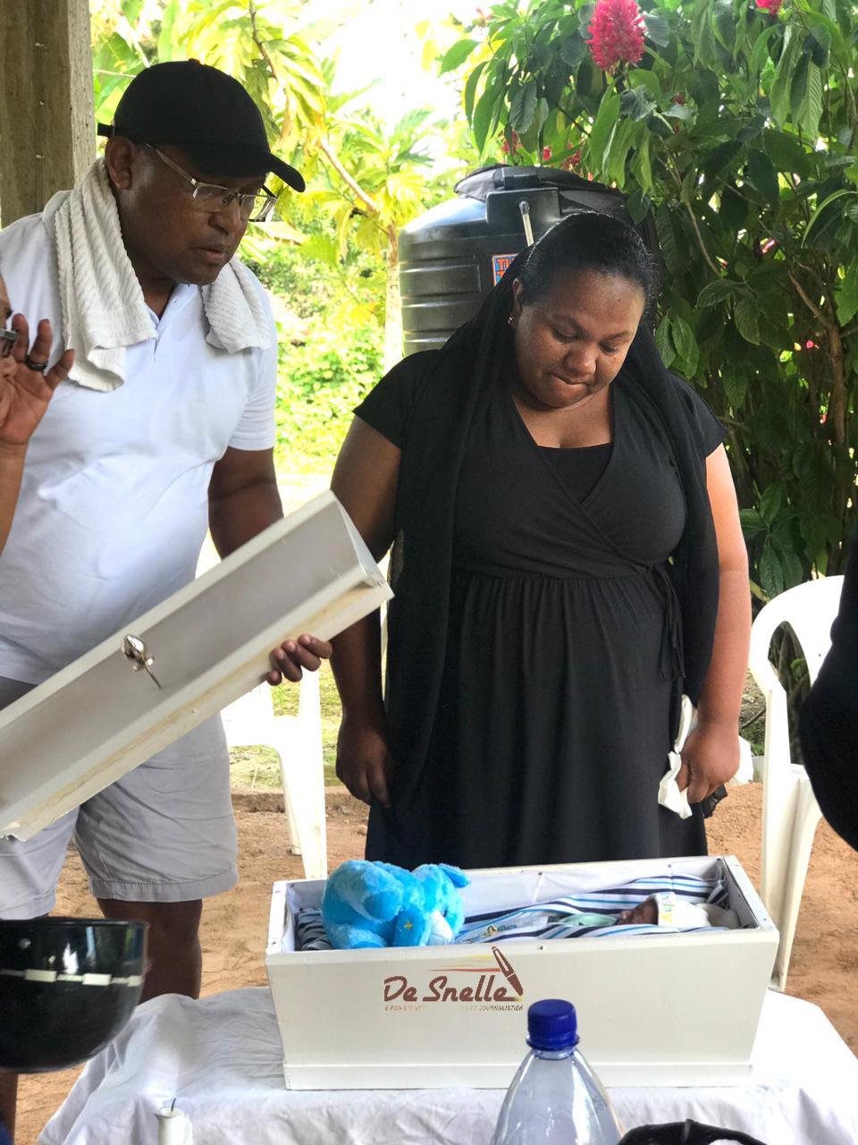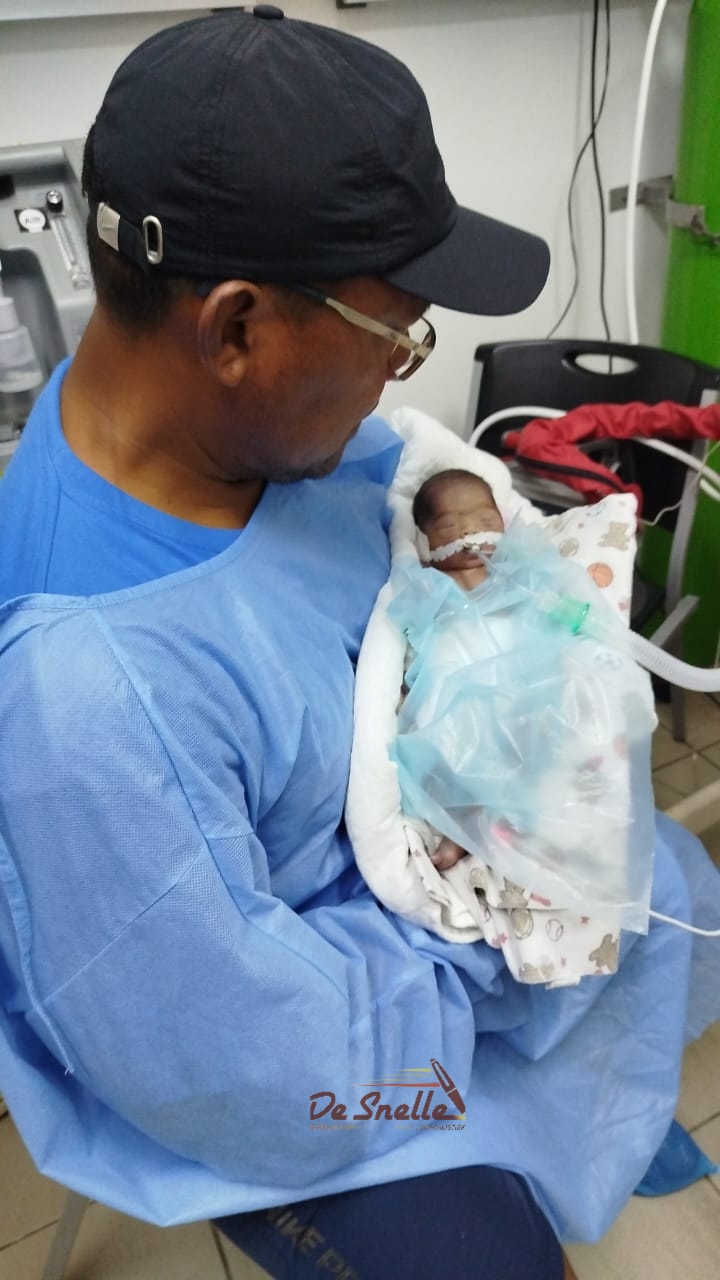 Op die bewuste avond begon zijn vrouw lichte pijn te voelen. “We dachten niet meteen aan een bevalling. Ze was immers nog net zeven maanden zwanger. Maar tegen elf uur werd de pijn te veel, en besloten we met spoed naar de poli te gaan.” Wat volgde, ging razendsnel. De dokter was nog onderweg van Apoera naar Washabo. Zonder medische begeleiding beviel zijn vrouw – veel te vroeg – van hun kindje. Een jongetje.