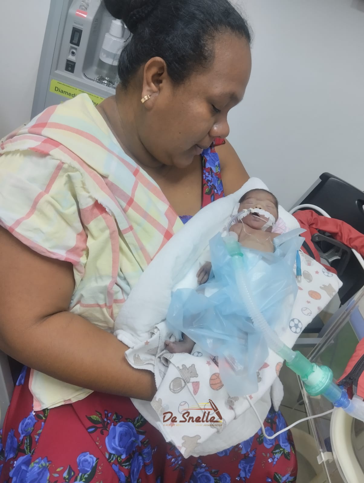 Toen de arts eindelijk arriveerde, volgde een snelle controle. De baby moest dringend overgebracht worden naar Nickerie — de poli beschikte niet over een couveuse. De enige manier? Een ambulanceboot. Maar die viel onder een andere instantie, en die gaf midden in de nacht geen toestemming om uit te varen. “Ze wilden het risico niet nemen. Dus bleef onze zoon, veel te vroeg geboren, de hele nacht zonder couveuse. Alleen met een zuurstoftoestel.”