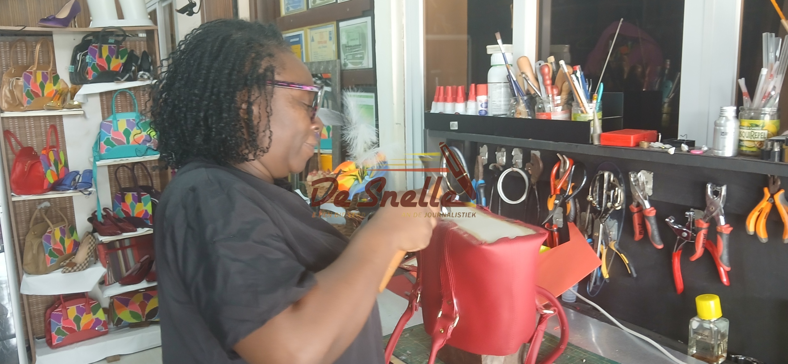 “Zonder educatie zou ik dit niet kunnen. Door me te laten scholen kom je de meesters tegen.” Die zoektocht naar kennis bracht haar ver buiten Suriname — naar Nederland, Nigeria en Italië. Vooral in Italië vond ze een nieuwe richting: schoenen. “Daar ben ik begonnen met deelschoenen en herenschoenen. Daarna heb ik me in Nigeria verfijnd. En ik ben nog steeds bezig. Ik wil sneakers doen, boots… echte veiligheidsschoenen.”